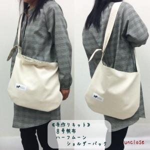 【手作りキット】8号帆布で作るハーフムーンショルダーバッグ/裏地プリント