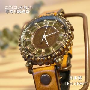 【手作り腕時計】日本製 アンティーク 腕時計 真鍮 クオーツ ハンドメイド 手作り SEIKO 本革 人気 プレゼント ギフト ペア 魅せる腕時計 レオクラフト LeoCraft
