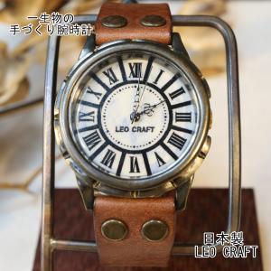 【手作り腕時計】日本製 アンティーク 腕時計 真鍮 クォーツ ハンドメイド SEIKO ペアウォッチ レディース 本革 英数字 魅せる腕時計 レオクラフト LeoCraft