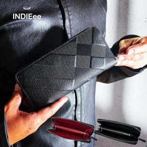 INDIEee インディ 本革 長財布 ラウンドファスナー ウォレット スマート トップレザー ケース 財布 シンプル 結婚式 メッシュ柄 プレゼント 魅せる財布