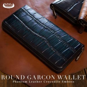 INDIEee インディ イタリア製 クロコダイル エンボス ファントムレザー ギャルソン ラウンド 長財布 メンズ 本革 ケース 個性的 大人 プレゼント 魅せる財布