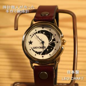 【一生物の腕時計】日本製 アンティーク 腕時計 真鍮 クォーツ SEIKO ペアウォッチ 月 三日月 本革 開運 可愛い 大人 人気 魅せる腕時計 レオクラフト LeoCraft