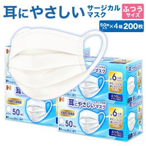 耳にやさしいサージカルマスク ふつうサイズ ホワイト 50枚入×4箱 200枚 | 長谷川綿行 耳が痛くなりにくい ウイルス 飛沫 花粉 男女 大人用 白 3層構造