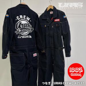 つなぎ デニム生地 ストライプ 長袖 おしゃれ ガレージ タイヤ URAS 綿