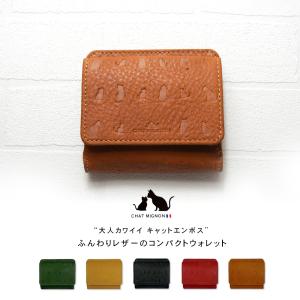 キャットデザイン コンパクト財布 / 猫 ネコ 本革 型押し ミニ財布 シャー ミニヨン レディース 財布 革財布 小さい財布 ブランド CHAT MIGNON