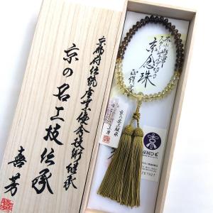 茶水晶 グラデーション グリーントパーズ スターシェイプカット 女性用 数珠 念珠 京念珠 喜芳 スモーキークォーツ 通夜 葬儀