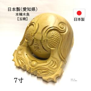 [愛知県製] 木魚 本楠 一式 7号 横幅21cm 7寸 国産 日本製 仏具 お盆 お彼岸 法事 ふとん 座布団 皮巻き籐柄バイ付き セット 高級