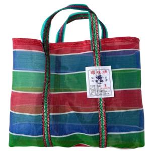 台湾 エコバッグ ナイロントートバッグ レトロバッグ 漁師網バッグ ナイロン アウトドア 温泉バッグ 雑貨 2号サイズ (小)WH×RD×GN×YE×BL 約W26×H22×D7cm