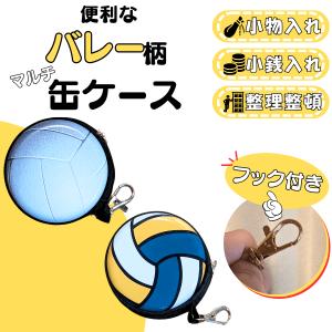 バレー グッズ 雑貨 プレゼント イベント 卒業 部活 ギフト 記念品 学校 フック付きで便利 バレーボール柄のマルチミニ缶ケース(小物入れ)