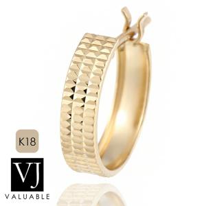 18金 メンズ ピアス K18 イエローゴールド ダイヤモンドカット テクスチャー フープ ※1個販売(片耳)[18k ハワイアン ぶら下げ ネイティブ 揺れ 垂れる フープ]