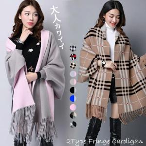 袖付き ドルマン カーデ ストール風 カーディガン3B34 フリンジ付き ポンチョストール コーディガン ポンチョコート シンプル両面 …