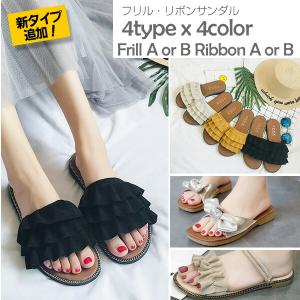 フラットサンダル かわいい フリル・リボンサンダル ローヒール 3A8