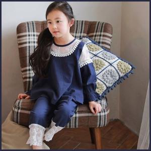 子供服 キッズ 子供 ルームウェア 寝巻き 上下セット 長袖 部屋着 シンプル シック レース パジャマ kd1686