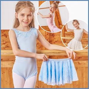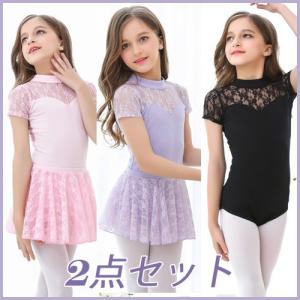 BALLET KIDS 2点セット ( レオタード + スカート ) バレエ 半袖 レース 可愛い シンプル スナップ付 kd1882 ma13
