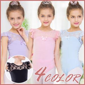 BALLET KIDS レオタード 半袖 レース レッスン 新体操 スナップ付き スカートなし バレエ 新体操 kd3338 ma5