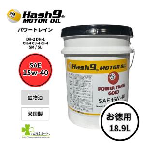 15W-40 ハッシュナイン Hash9 パワートレイン ゴールド 5ガロンペール エンジンオイル お得 高性能 燃費向上 並行輸入