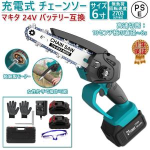 チェーンソー 充電式 小型 6インチ マキタ バッテリー互換 電動式 高速切断 コードレス 片手 強力 家庭用 収納ケース付き 安全ロック 木工切断 枝切り 軽量 女性