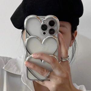 スマホケース iphoneケース ハート シルバー 可愛い iphone16 e ケース iphone ケース 耐衝撃 おしゃれ ケース iPhone 15 14 13 12 pro max カバー 韓国 D62