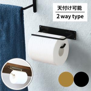 トイレットペーパーホルダー 2連 ゴールド おしゃれ アイアン ダブル オシャレ シンプル 天付け 上付け 棚下 2WAY