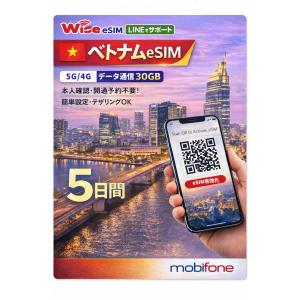 【ベトナムeSIM】利用日数5日 データ容量30GB MobiFone ベトナムプリペイドSIM 高速データ通信 Vietnam eSIM / ※esimの為、物理SIMの発送はありません。