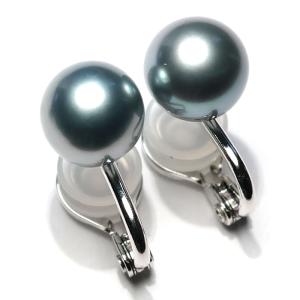 イヤリング タヒチ黒蝶真珠幅9.5mm 青色がかったグレー色が上品 定番イヤリング 微調整でき痛くないシルバー製ソフトタッチイヤリング 冠婚葬祭