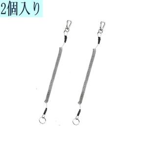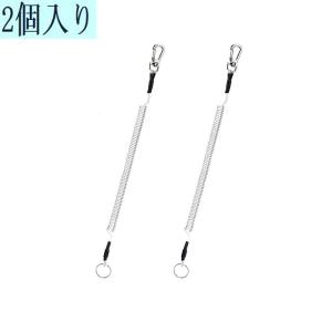 カラビナタイプ 極太バンジーストラップ バンジーコイル ステンレスワイヤー 紐コイル 落下 紛失 防止 キーチェーン ホワイト 26CM 2本入り