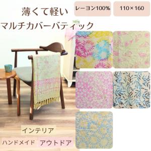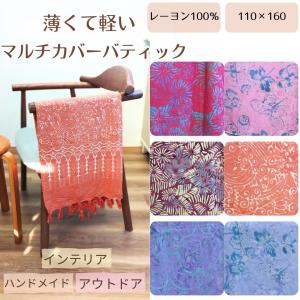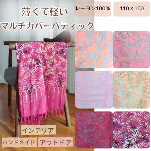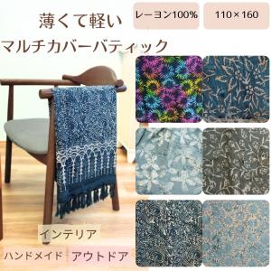送料無料 キャンプ レジャー インテリア アウトドア ハンドメイド ボタニカル マルチカバー バティック レーヨン 薄手 おしゃれ カラフル クロス 110×160