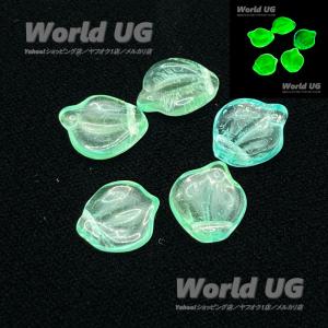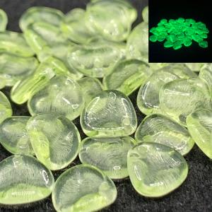 ウランガラス リーフ型ビーズ 黄色マットAB処理 7.6mm×12mm 20粒