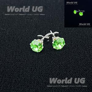 ウランガラス スタッドピアス グリーン 6.3mm サージカルステンレス