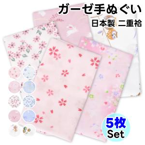 ガーゼ手ぬぐい 日本製 二重袷 5枚セット ピンク系 ブルー系 サクラ1 サクラ2 小花 和ウサギ フクロウ 手ぬぐい 手ぬぐいタオル