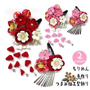 ちりめん つまみ細工 髪飾り かんざし 2点セット 七五三 パッチン留め 着物 袴 和装 節句 卒業式 卒園式 お正月 ひな祭り 子供用 キッズ 女の子 Uピン