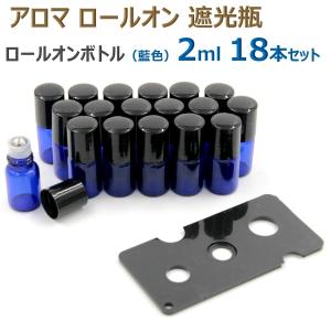 アロマ ロールオンボトル ロールオン 遮光瓶 オイル 香水 精油 詰替 ケース 保存 容器 ボトル ガラス ビン 香水瓶 藍色2ml 18本