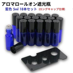 アロマ ロールオンボトル ロールオン 遮光瓶 オイル 香水 精油 詰替 ケース 保存 容器 ボトル ガラス ビン 香水瓶 藍色5ml 18本/ロングキャップ
