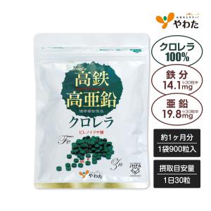 やわた 高鉄高亜鉛クロレラ 約1ヶ月分(900粒入) クロレラ 鉄分 亜鉛 無添加 サプリ サプリメント