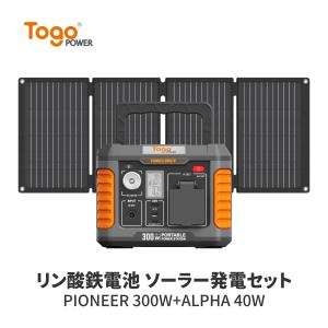 TogoPower 300W ポータブル電源 40W ソーラーパネルセット リン酸鉄 蓄電池 軽量 純正弦波 小型 ソーラーチャージャー 太陽光発電 防災 地震 停電 プレゼント