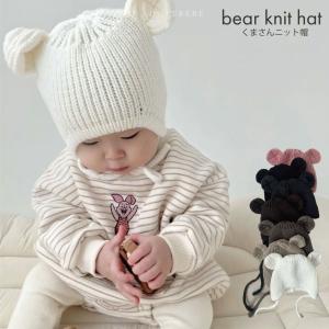 oottbebe ベビーニット帽 くま 赤ちゃん 帽子 冬 くま耳 耳付き 子供 キッズ ニットキャップ コーデ 可愛い 寒さ対策 お出かけ 熊 紐付き プレゼント