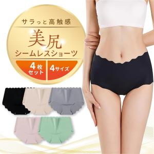 シームレスショーツ レディース ハイウエスト 4枚 セット 下着 深履き 無地 ヒップアップ 20代 30代 40代 50代 ショーツ 無縫製 スカラップ