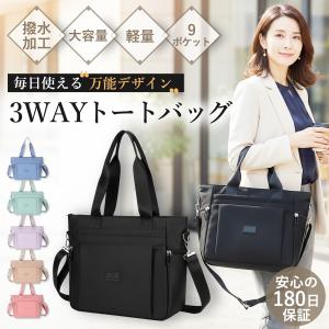 ショルダーバッグ トートバッグ レディース 3WAY 大容量 軽量 撥水 ナイロン 通勤 通学 マザーズバッグ 斜めがけ 肩掛け シンプル ファスナー付き