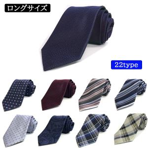 ネクタイ ロングサイズ おしゃれ シルクブレンド 無地 ストライプ チェック 小柄 父の日 メール便送料無料
