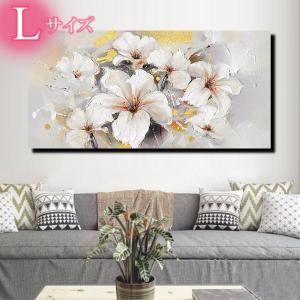 インテリア 手書きの油彩画 アートパネル モダン おしゃれ 特大1パネル 白い沢山のクラシカルフラワー Lサイズ