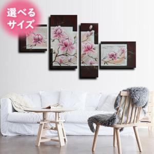 アートパネル インテリア モダン 絵画 壁掛け 和モダン 花 手書きの油彩画 4枚セット ピンクのお花 選べるサイズ