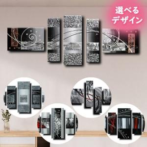 絵画 インテリア 壁掛け 手書きの油彩画 油絵 アートパネル 5パネルセット 抽象画 選べるデザイン シルバー レット メタリック ブラック