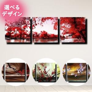 絵画 壁掛け 風景 花 モダン アートパネル インテリア 和 日本画 手書きの油彩画 3枚セット 色々な風景 選べるデザイン 赤 紫 和モダン