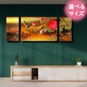 絵画 壁掛け 風景 花 モダン アートパネル インテリア 和 日本画 手書きの油彩画 3枚セット 鯉 選べるサイズ
