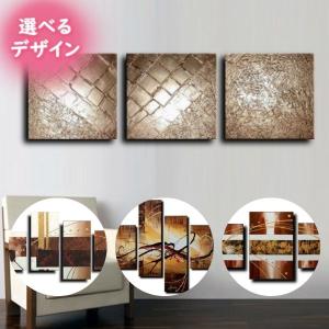 手書きの油彩画 絵画 壁掛け 油彩 油絵 モダン アートパネル 3パネルセット 4パネルセット 選べるデザイン ブラウン 茶色 メタリック