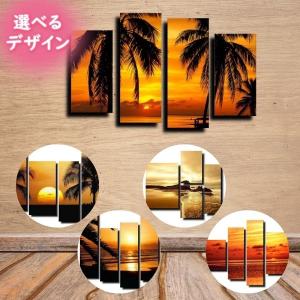 絵画 インテリア 壁掛け 油絵 手書きの油彩画 アートパネル おしゃれ 風景画 4枚セット 夕方の海 選べるデザイン 夕日 ヤシの木 夕焼け ビーチ ハワイアン