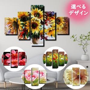 絵画 アートパネル 手書きの油彩画 インテリア おしゃれ お花 クラシカル 5枚セット 選べるデザイン 向日葵 ハワイアン チューリップ 野原の花 ハイビスカス