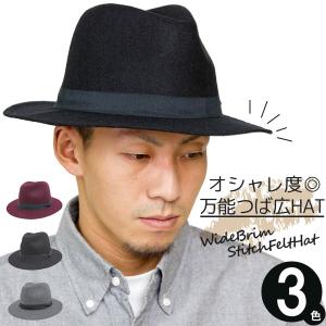 ハット メンズ つば広 帽子 中折れ サイズ調整 秋冬 ウール
