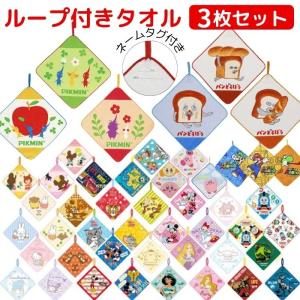 キャラクター ループタオル 3枚組 かわいい ループ付きタオル 吊り下げ タオル ピクミン ディズニー マリオ ミッフィー サンリオ