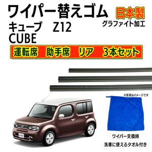 【互換品】キューブ Z12 ワイパー 替えゴム 日産純正互換品 フロント2本 リア1本 3本 CUBE 日本製